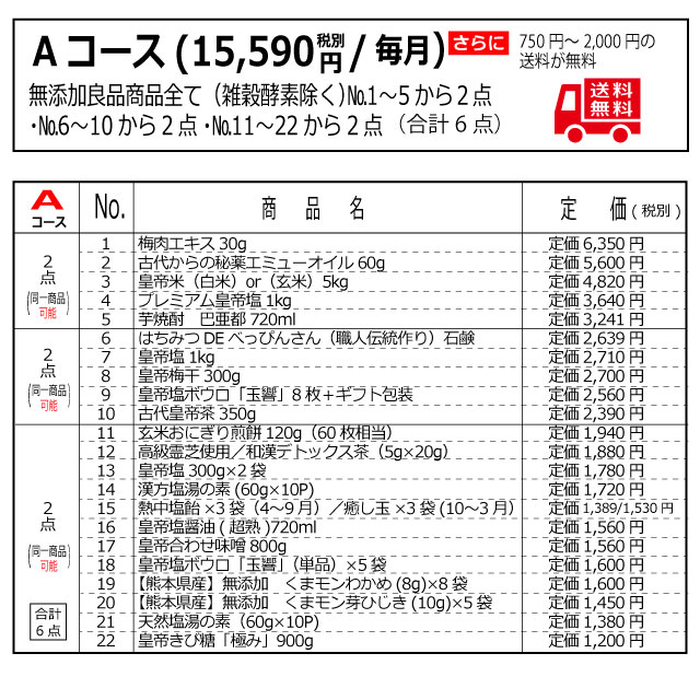 無添加良品定期 Aコース