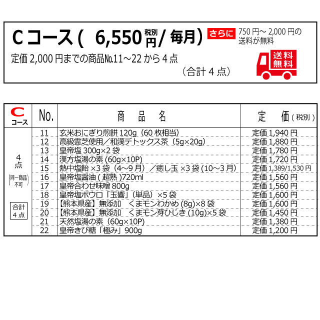 (毎月ではなく1 年間で12 回分お取り引き頂ければ問題ございません。)※塩定期除く